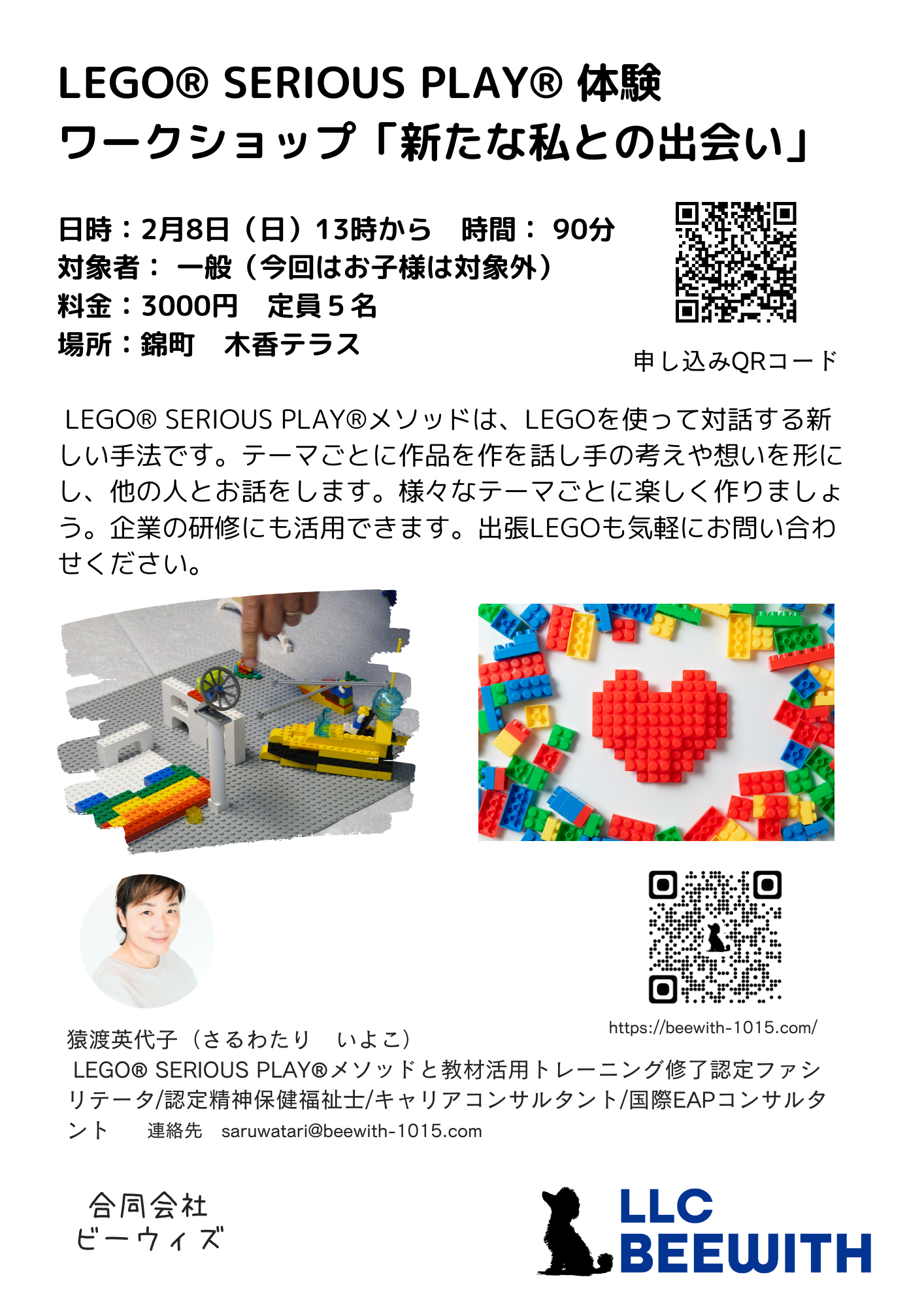イベント・セミナー 2026.01.29 【開催決定】LEGO® SERIOUS PLAY® 体験 ワークショップ「新たな私との出会い」 LEGO® SERIOUS PLAY®メソッドは、LEGOを使って対話する新しい手法です。テーマごとに作品を話し手の考えや思いを形にし、他の人とお話をします。様々なテーマごとに楽しく作りましょう。企業の研修にも活用できます。出張LEGOも気軽にお問い合わせください。 詳細・お申し込みは以下のチラシをご覧ください。 記事一覧ページに戻る